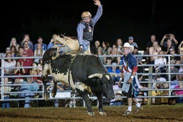Advance tickets for the Phillips Rodeo can be purchased in person at our official ticket outlet located inside OAK VALLEY TRADING (Hwy 53 - Next to Dairy Queen). You can also buy advance tickets online for the Phillips Championship Rodeo at LINK COMING SOON or for the Cartersville, GA Rodeo at LINK COMING SOON!. Tickets are available for purchase at the gate each night of the rodeo with cash. General admission is $25; children ages 5-9 are $15; and kids aged 4 and under get in free. Don't worry about parking, as it's free! Make sure to arrive early—gates open at 6 PM. Enjoy concessions with food and drinks, and check out souvenir items for sale at the rodeo. Each night of the rodeo, you can also enjoy mechanical bull rides, a rock climbing wall, and pony rides, making it a fantastic event for families in the area, including those attending the Calhoun Rodeo and other rodeos in Georgia.